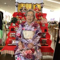 シニアハウス黄金では、お雛様の前で写真撮影とカルタやトランプなどの