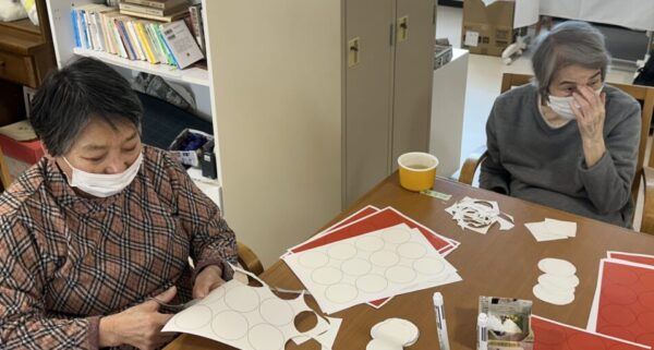 入居者の皆様は一生懸命に飾り作りをされ